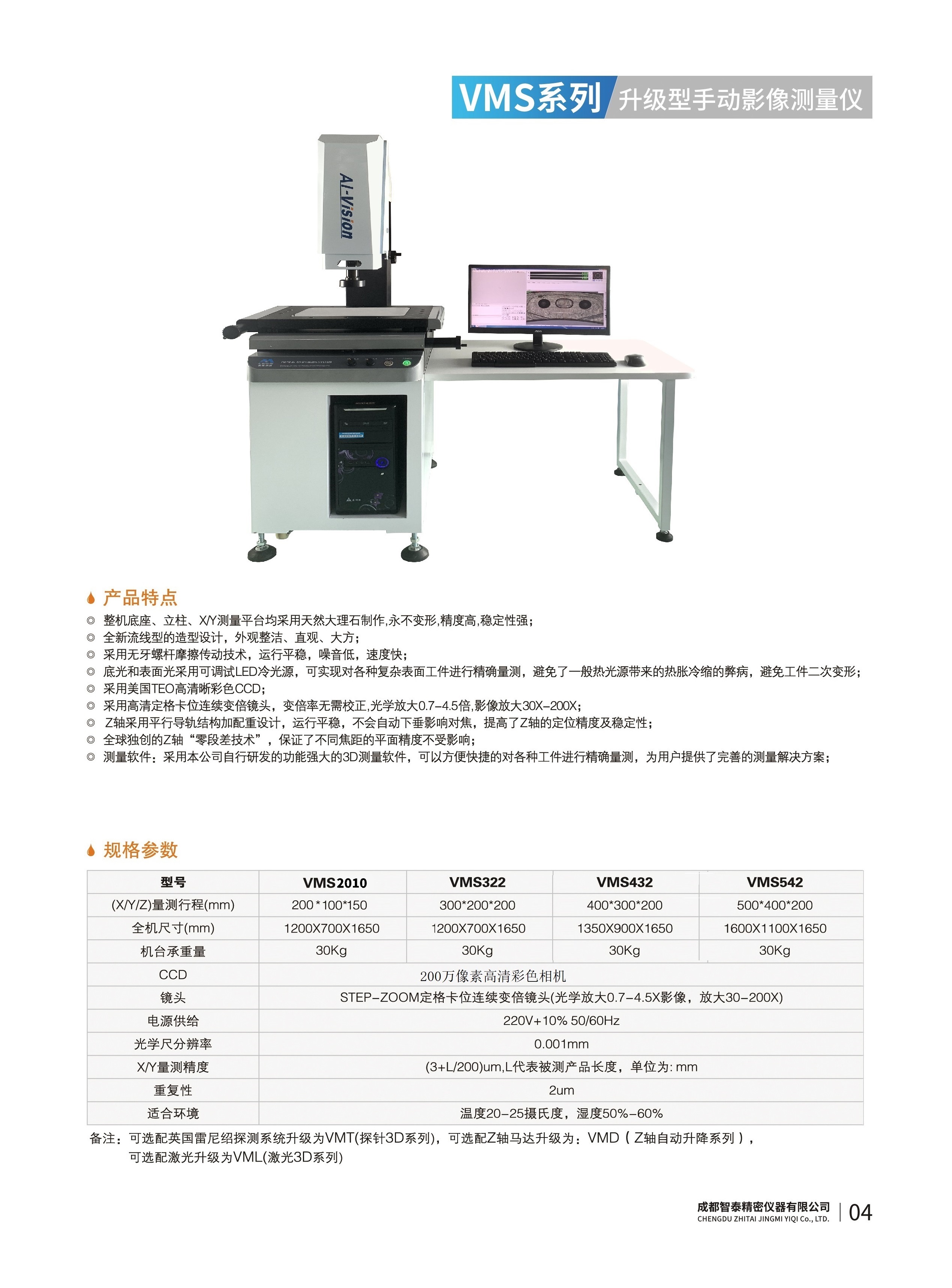 成都智泰精密仪器有限公司专注于精密测量仪器,人工智能,智能制造领域,专业从事智能视觉自动化检测解决方案的贸易型企业。公司成立于2011年,位于天府之国成都,现有行业精英十余人,办公仓储面积200余平米。 公司主要产品为精密光学影像测量仪,精密轮廓形状测量仪,精密机器人定位系统,精密智能视觉尺寸检测仪器,精密表面缺陷智能检测设备,工业工程特种机器人。 公司凭借过硬的技术实力和产品方案,率先进入智能视觉自动化检测领域,推广以精密智能视觉自动化检测为基础的机器人自动化应用,公司不断整合上下游的资源,拥有巨大的全产业链优势??突禾甯哺橇宋夜苤圃煲档亩嗍煊颍ê娇?、航天、军工、汽车、新能源、光伏、食品,精密电子、精密机械、模具、PCB、LCD、五金、塑胶、医疗、教育、计量及科研院所等行业。 公司创新的产品能满足生产与制造行业客户的要求,训练有素的工程师能及时提供多种技术服务,如解...